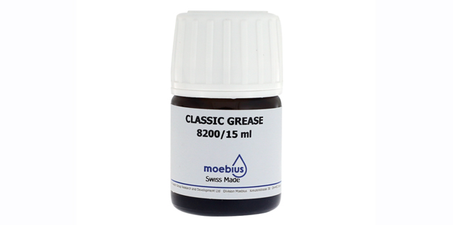 Grease for mainspring, winding mechanism and other low running parts with a large surface of friction. Also used instead of MOEBIUS 8300 if latter too thick